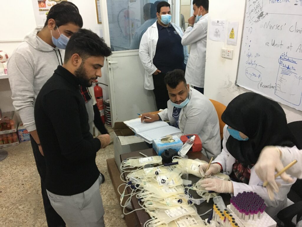 بأشراف التدريسي م.م. حسين عباس فاضل من قسم تقنيات التخدير وتعاون الدكتور احمد اسود مدير مصرف الدم الرئيسي في كربلاء